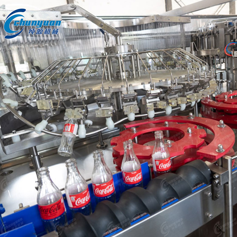 自動化程度高:玻璃瓶可樂灌裝線是一條全自動化流水生產線,可以實現從純凈水處理到成品包裝的全自動生產。灌裝精度高:采用等壓灌裝原理,灌裝精度高,液面控制穩定,避免了灌裝過程中產生泡沫的問題。適應性強:可以根據用戶要求設計不同容量的瓶型,適用于灌裝不同規格和種類的碳酸飲料。可樂汽水設備可靠:整機采用卡瓶頸懸掛運行工態設計,克服了由于瓶壁薄、瓶高度誤差而引起的機器不能正常運轉的因素,更換瓶型方便快捷。操作安全、維修方便:設備結構先進,工作平衡可靠,操作安全,維修方便。