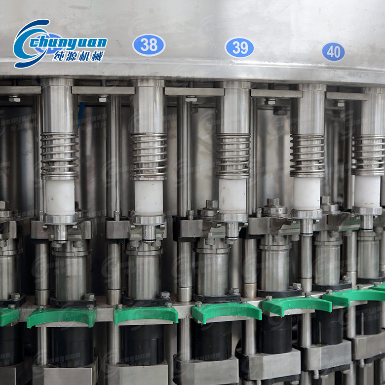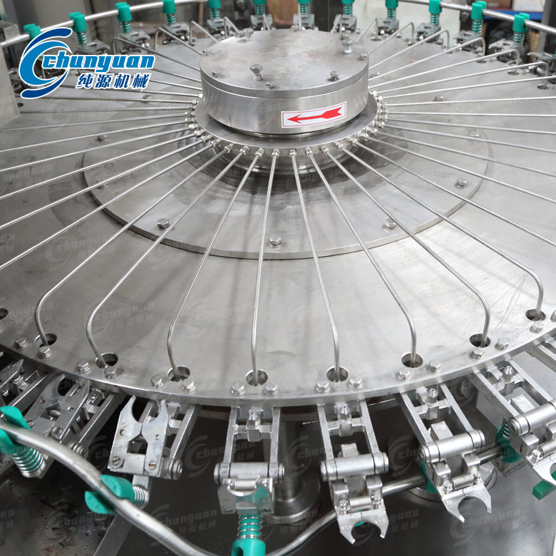 純源飲料機械廠家生產制造的小瓶礦泉水灌裝機械適合350-1500ml的PET瓶裝水的灌裝生產,根據物料水位高度主動控制,過程全自動生產完成。小瓶水灌裝設備選用懸掛式灌裝,不一樣的瓶型、瓶子大小、厚簿都可以操作,使用范圍廣泛。